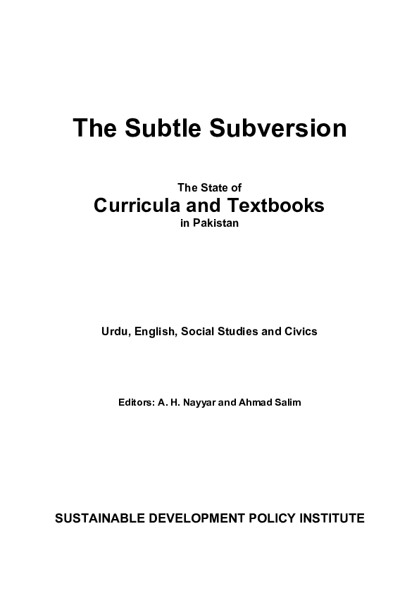 Pdf The Subtle Subversion The State Of Curricula And Textbooks In Pakistan Urdu English Social Studies And Civics Abdul Nayyar Academia Edu